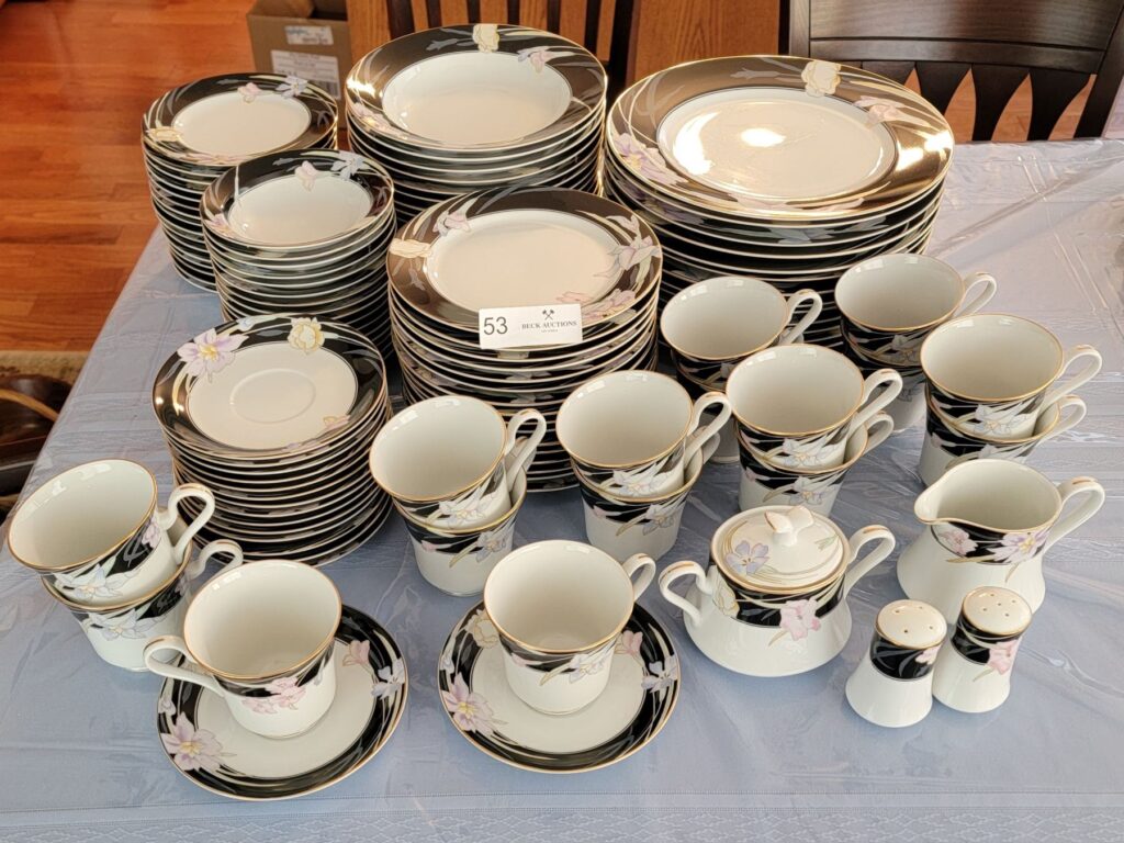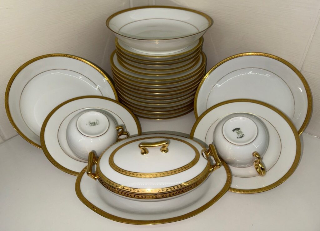 French Limoges Porcelain Service Set With Gold Trim & Double Inlay