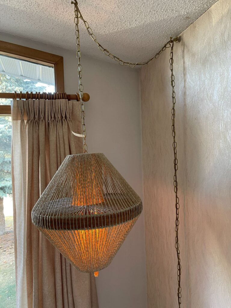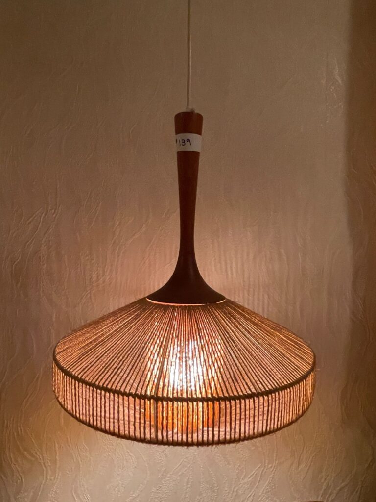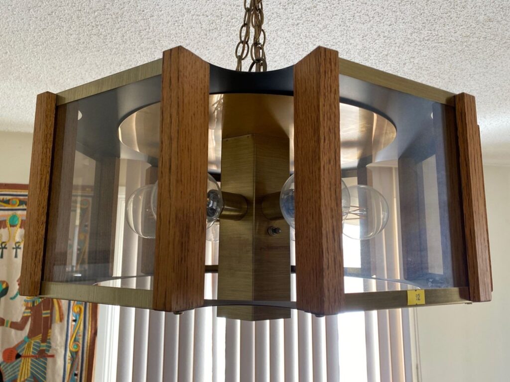 Mid Century Modern Light Fixture Teak & Brass 24D