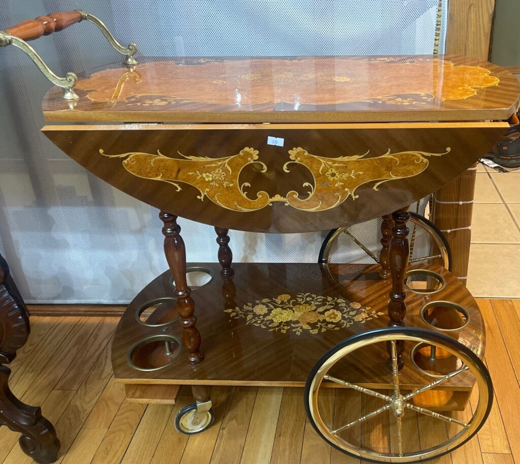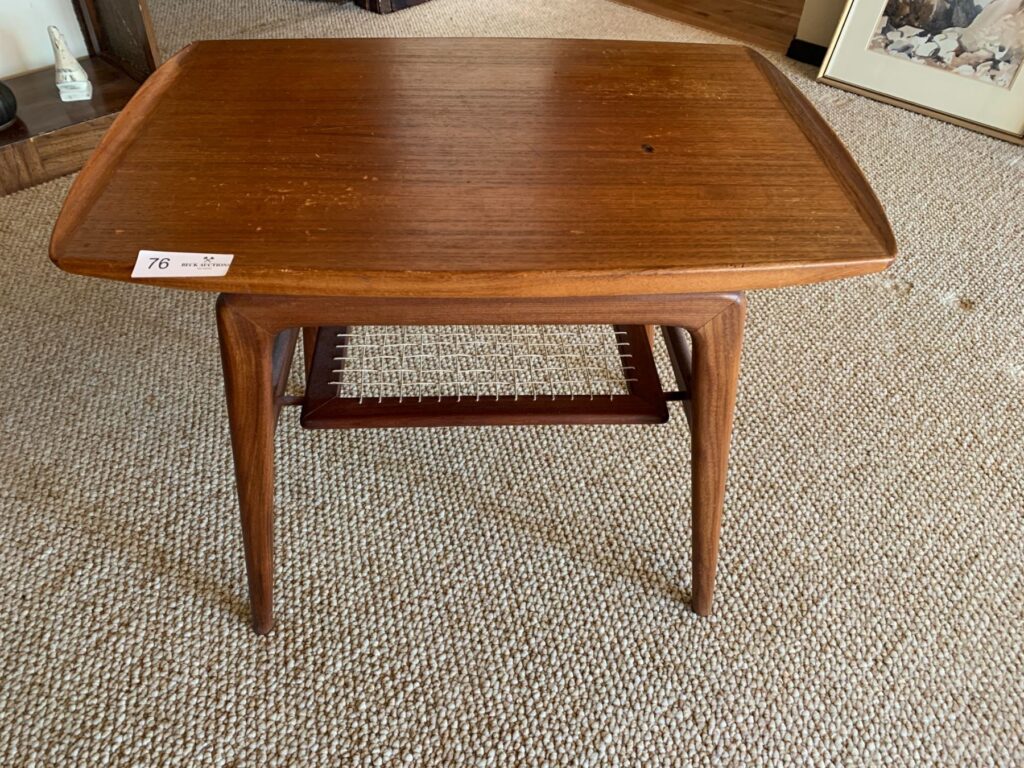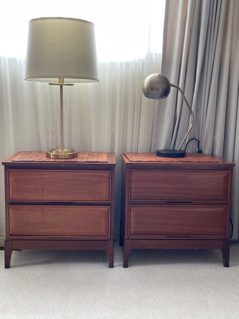 Pair of Teak Side Tables w/ Decorative Coverings & Assorted Lighting