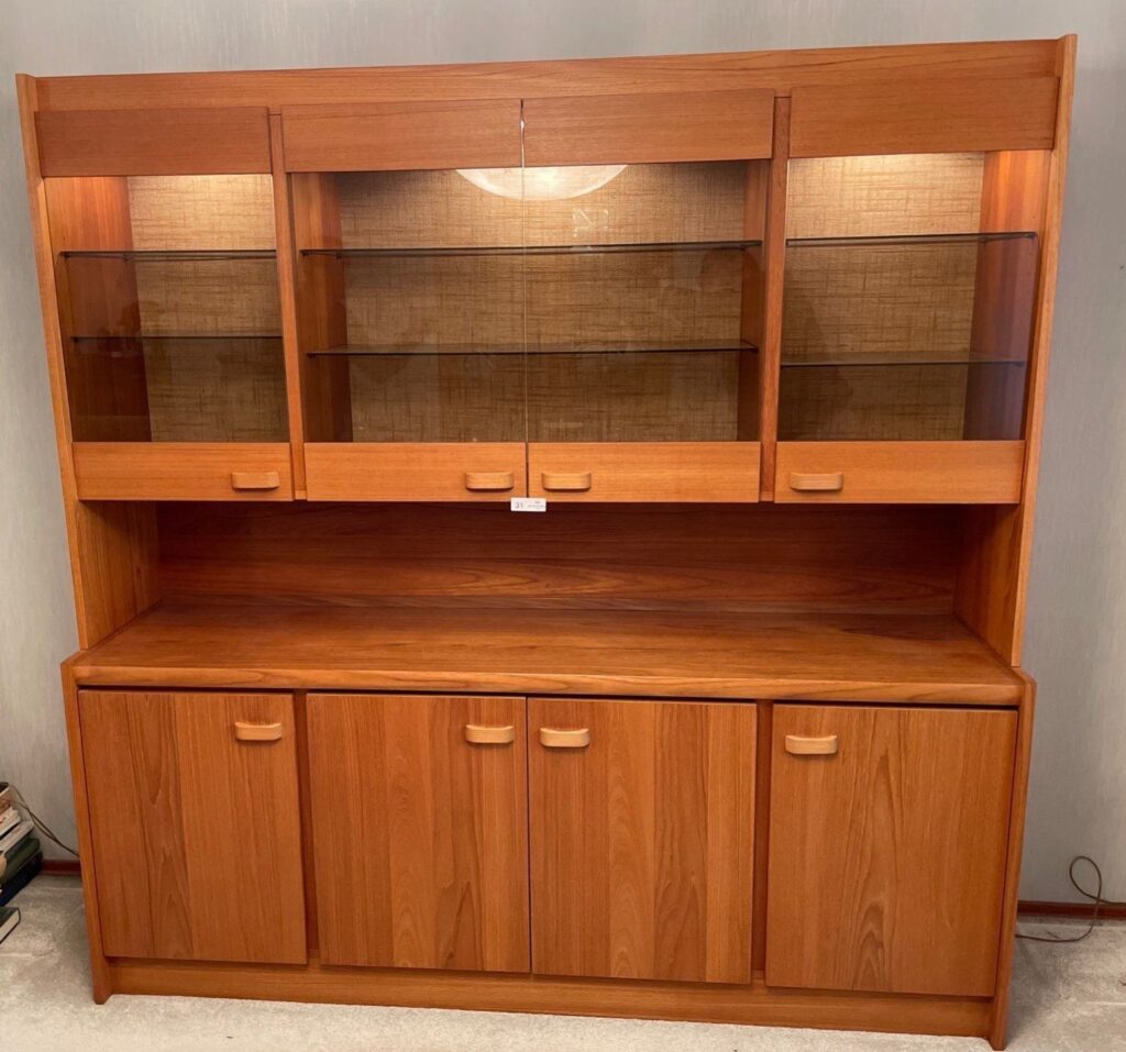 Teak Hutch With Pot Lights Glass Shelving Hidden Drawer