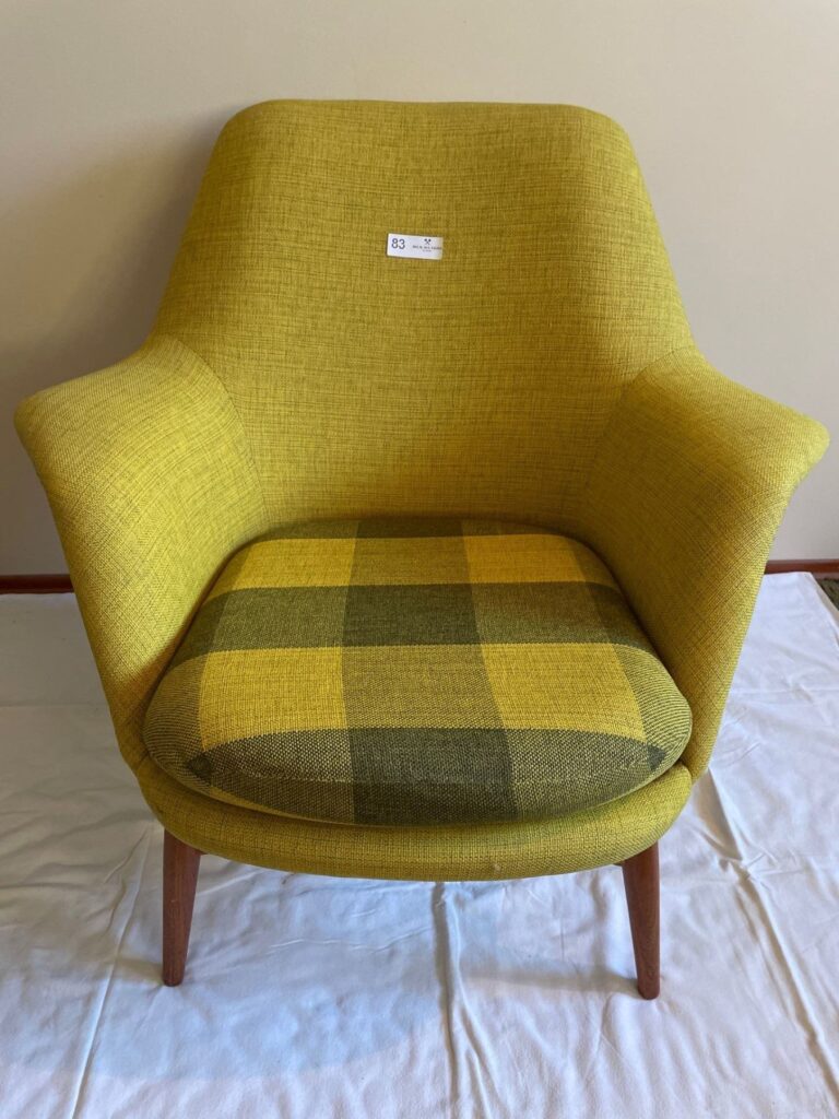Mid Century Modern Teak Yellow/Lime Accent Chair