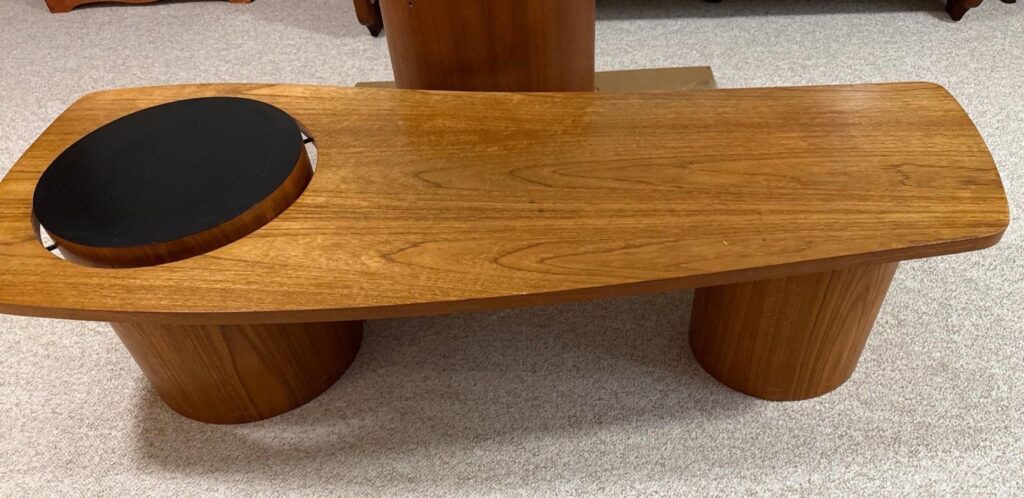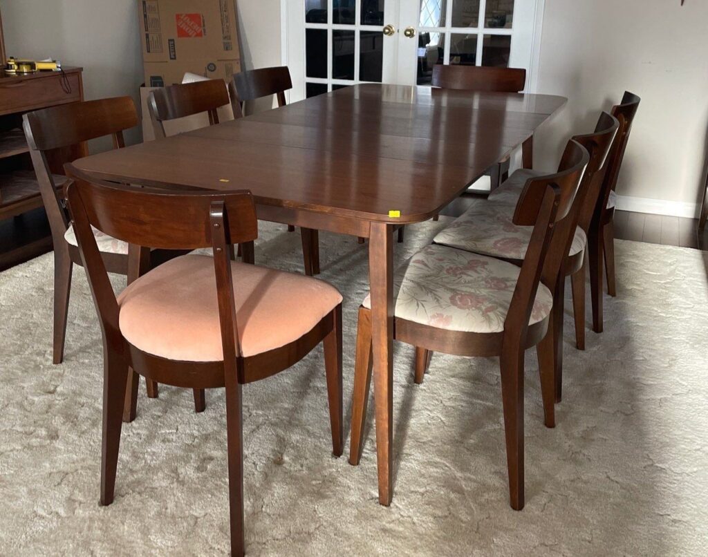 Mid Century Modern Teak 8 Person Kitchen Table & Chairs With 3 Leaf Inserts