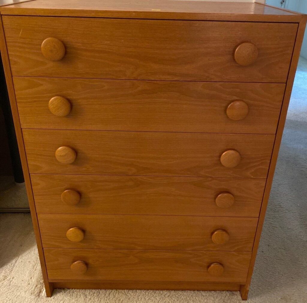 Danish Teak Veneer Six Drawer TallBoy Chest of Drawers