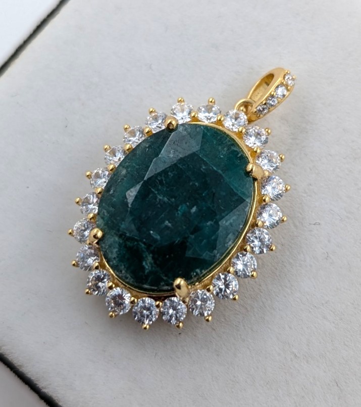 9.60 ct Certified Sterling Silver Emerald Gemstone Pendant