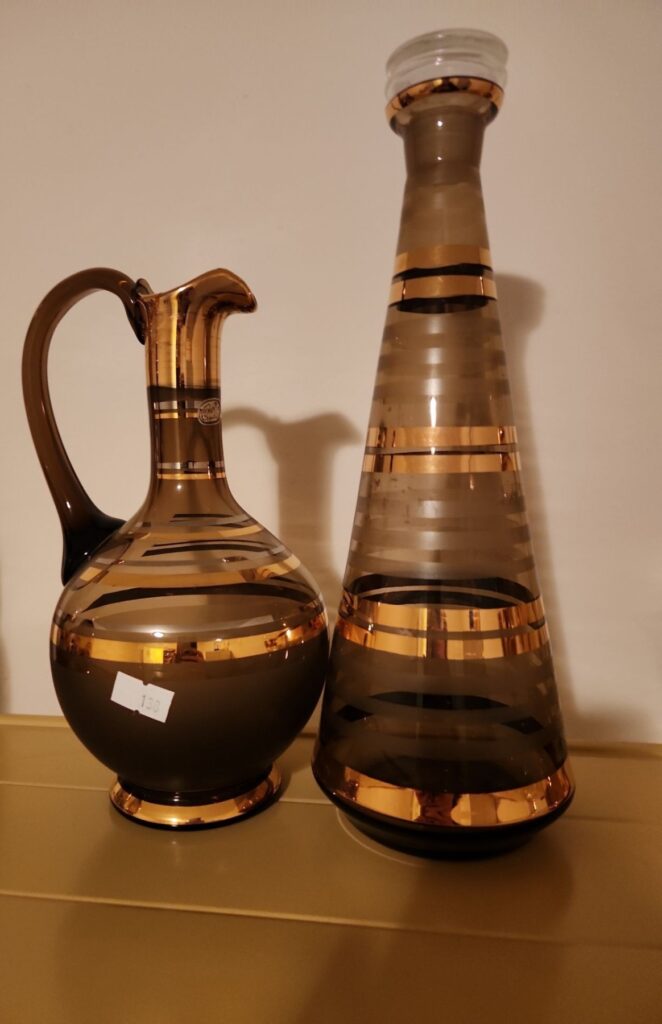 Bohemian Glass Pitcher and Decanter 12 T