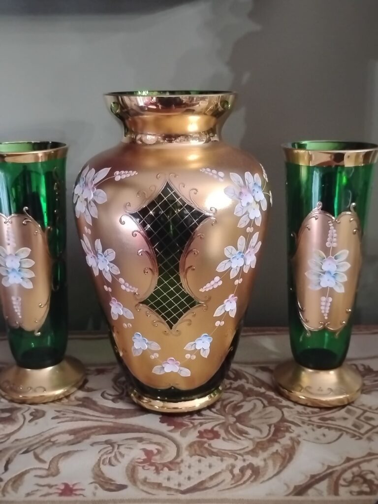 Bohemian Green & Gold Glass Collection