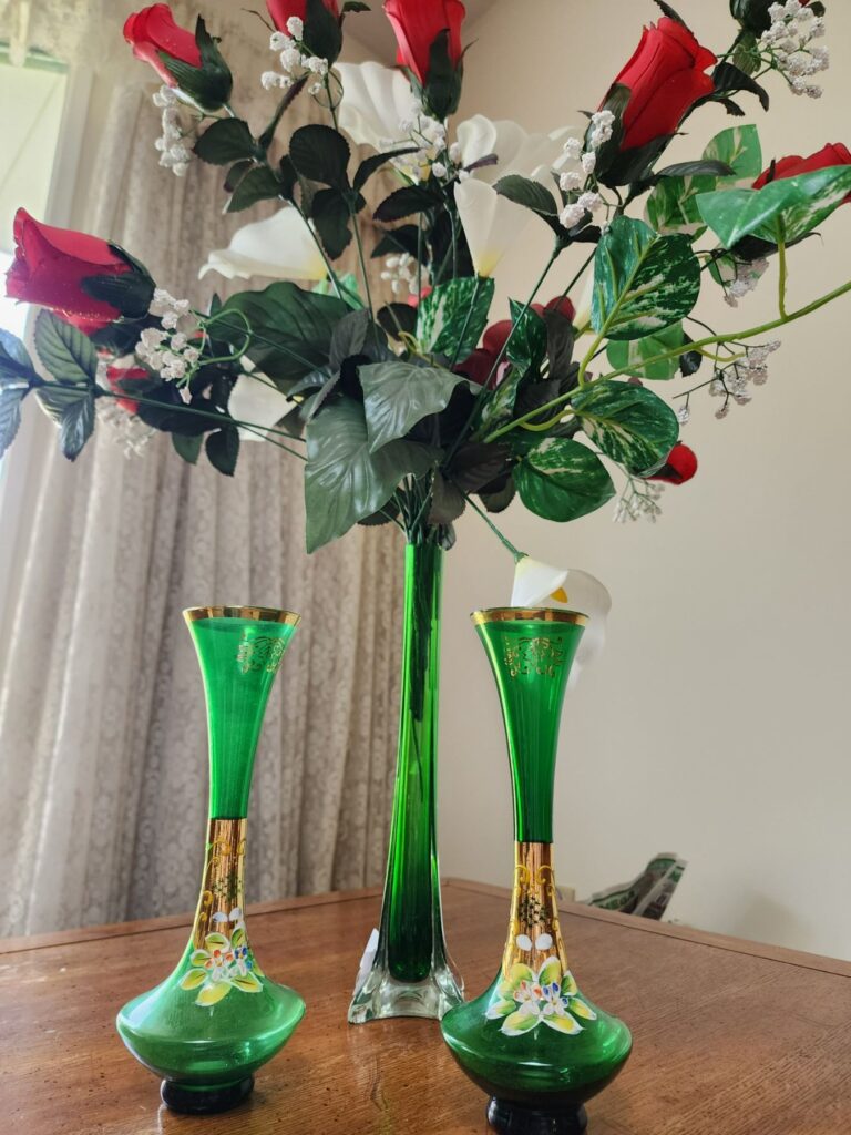 Venetian Glass Green Flower Vases 14T