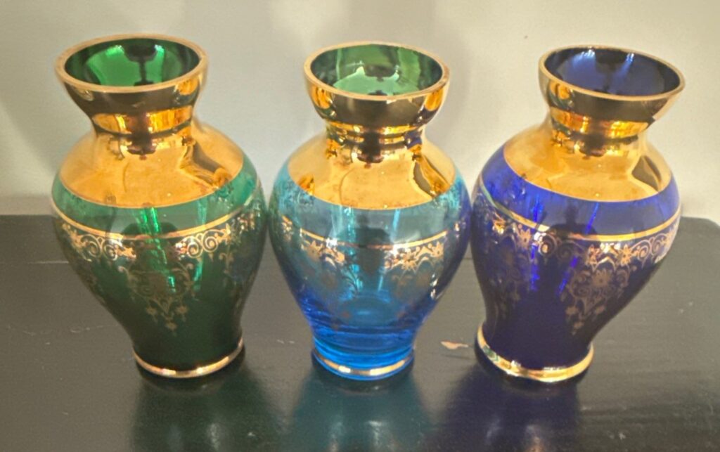 Lazzarini Art Glass Vases - Handblown Italian Venetian Glass w/ 24K Gold Trim
