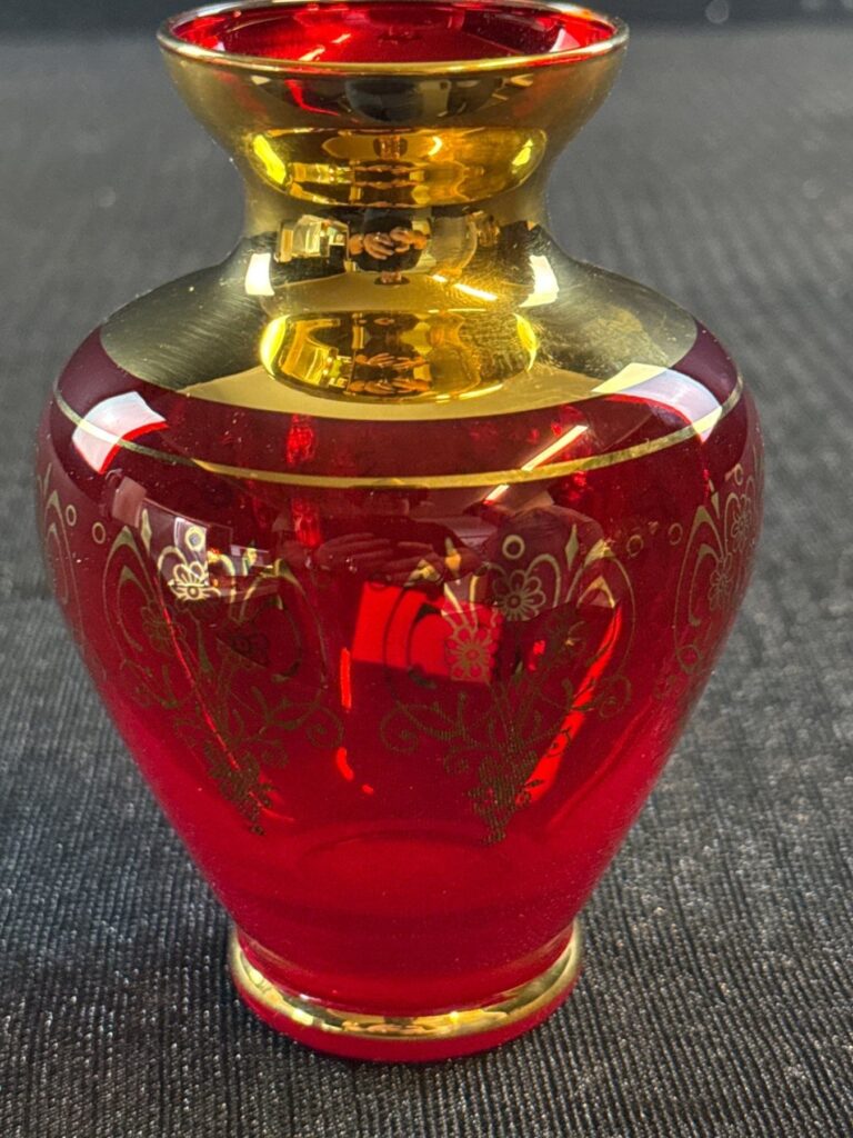 Venetian Ruby Glass Gold Gilt Vase 5.5
